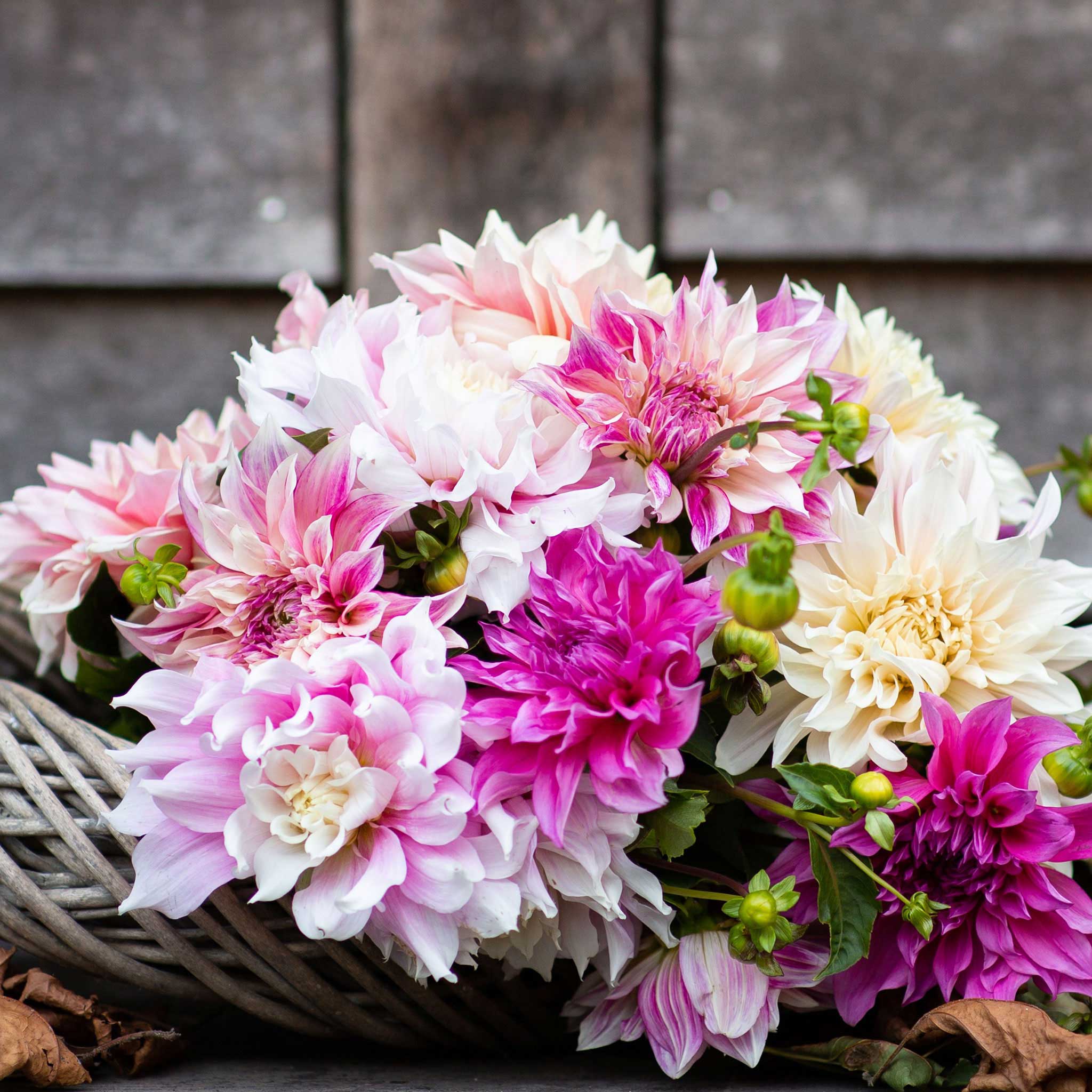 Beautiful Dahlias come in a stunning range of shades, but none are as classic and sophisticated as the lovely Bridal Bouquet Collection! A light and airy mix of demure shades, these blushing pastels are always proper and never go out of style, especially on your big day.